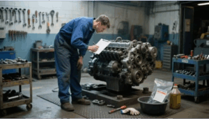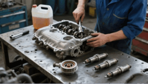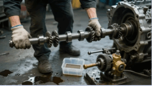 - When removing the camshaft and guide rod from the cylinder block, rotate the camshaft gear and lift it slightly. Since the camshaft is long, two people may be required to cooperate during removal to avoid damaging the shaft and bushing.